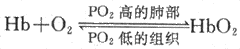(二)Hb与O2结合的特征血液中的O2主要以氧合Hb(HbO2)形式运输。O2与Hb的结合有以下一些重要特征: 1.反应快、可逆、不需酶的催化、受PO2的影响。当血液流经PO2高的肺部时,Hb与 O2结合,形成HbO2;当血液流经PO2低的组织时,HbO2迅速解离,释放O2,成为脱氧Hb:
