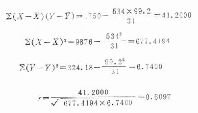 为了获得公式22.2中各数据,先将表22-1资料进行计算如表22-2。