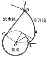 在圆盘周围绕上一根不会伸缩的细线,线端栓一支铅笔,拉紧线端A逐渐拉开,铅笔尖在纸上画出来的曲线就是圆的渐开线.这个圆称为渐开线的基圆.细线称为渐开线的发生线(7.16(a) ).