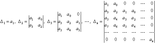 那末常系数线性微分方程组零解是渐近稳定的充分必要条件是:a0>0,且所有的胡尔威茨行列式