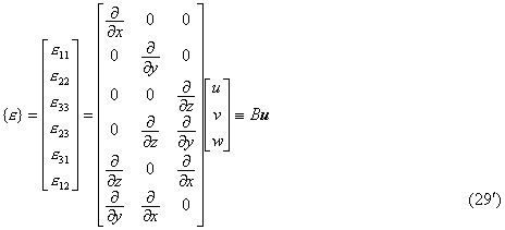 关系式(29)称为几何方程,其矩阵形式为