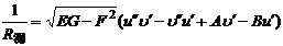 FG为曲面的第一基本量(在点M取值)。坐标线u=常数和v=常数的交角决定于