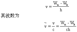 根据玻尔的第二个假设,原子系统中电子从较高能级Wn,跃迁到较低能级Wk时,发出单色光,其频率为