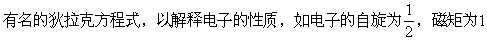【狄拉克】1902年生,英国理论物理学家,原在布里斯托大学学习工程,后兴趣转到物理而在剑桥大学获物理学博士学位。193331岁时以对量子力学的贡献荣获诺贝尔物理学奖(与薛定谔共享)。1925年海森堡和薛定谔创立量子力学,狄拉克将相对论引进量子力学,写下