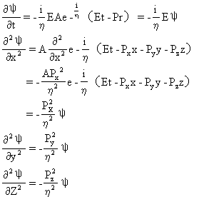 用上述与能量和动量相对应的算符代替EP,并在等式两边乘上粒子的波函数ψ(rt)便得到