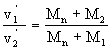 式中的v′为反冲核速度,v为中子的初速度,Mn为中子的质量,M为反冲核的质量。在中子速度相同的情况下,质量为M1M2的两个不同的反冲核的速度v1v2之比为
