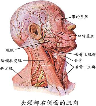 Located at the pate both sides, one side contraction may cause to with the side incline, the face to change the opposite side. After the two-sided contraction may cause, supine.