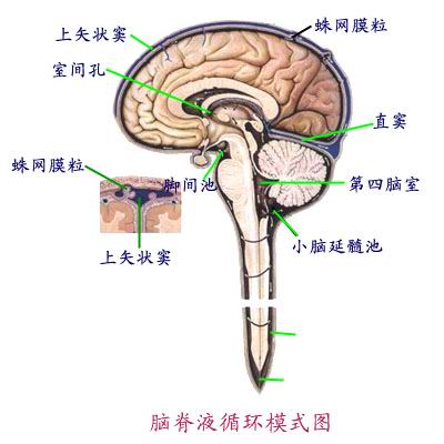 脑脊液产生于各脑室脉络丛。 Cerebrospinal fluid produced in each ventricle choroid plexus.