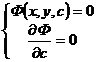 All the curves obtained by eliminating c are called the c - discriminant curve of the curve family, which contains the envelope of the curve family . However, it should be noted that the c - discriminant curve is not necessarily the envelope of the curve family. Check .
