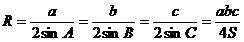 a, b, c are the three sides of the triangle and R is the radius of the circumcircle